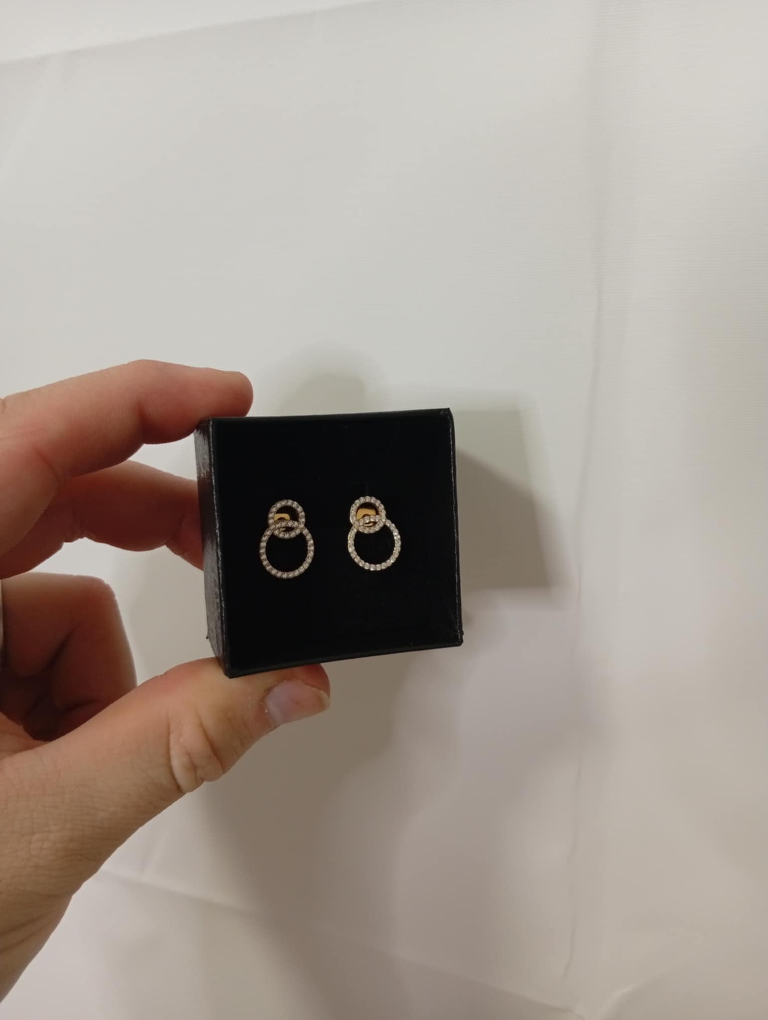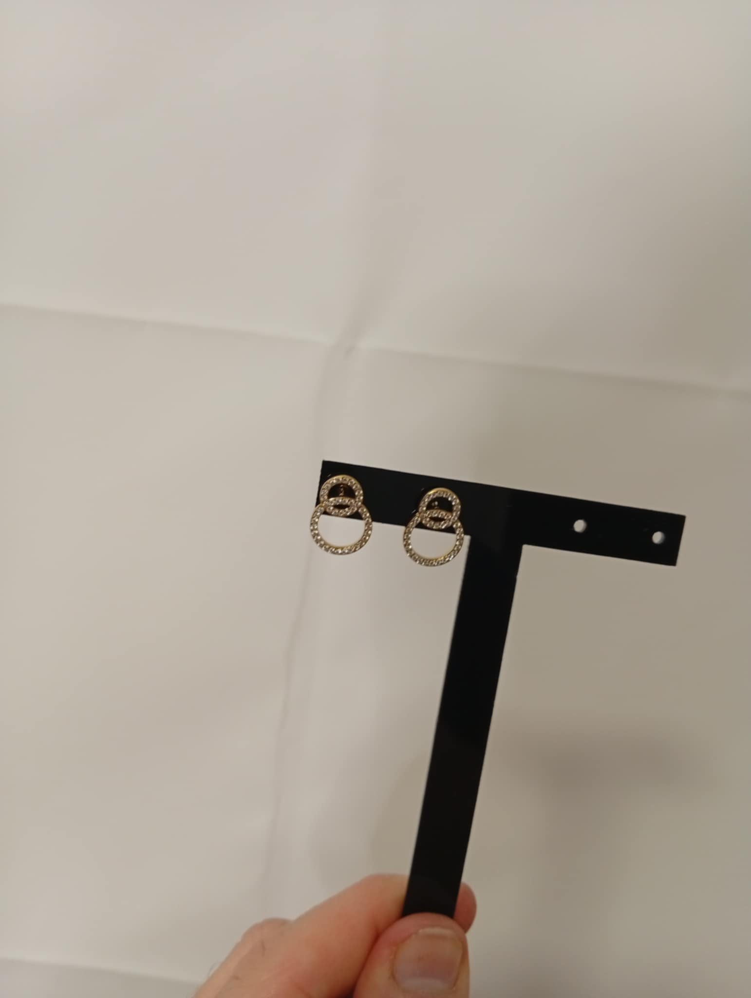 smukke ørestikkere med sten lavet som to cirkler der bindes sammen.