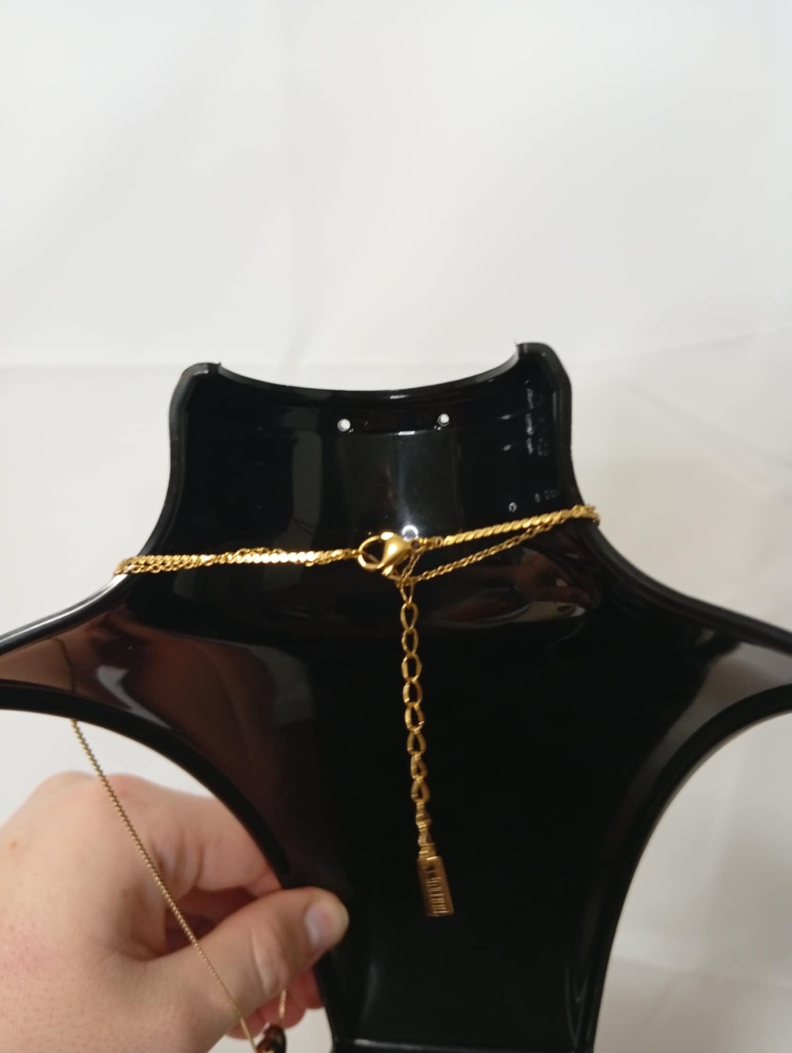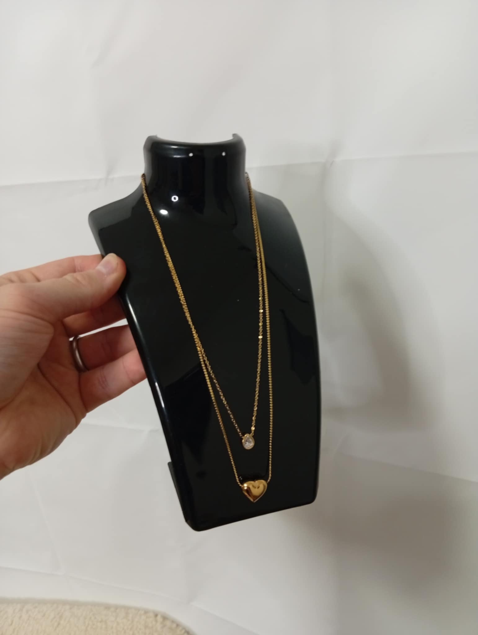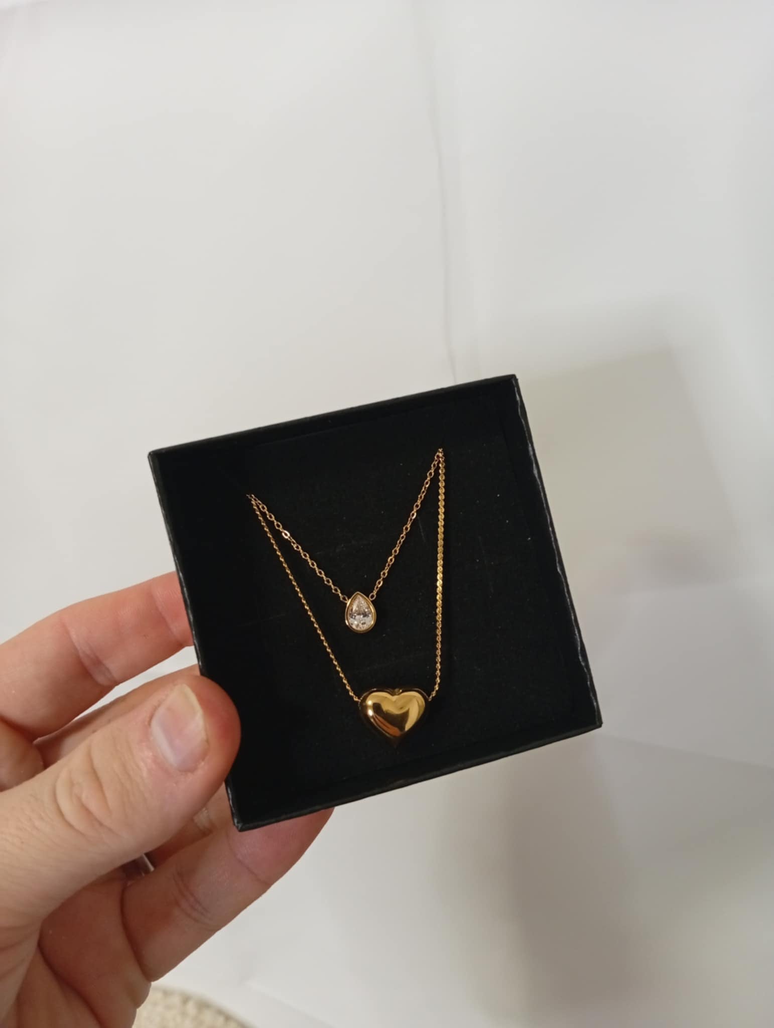 Smuk dobbelt halskæde to i en, med en sten og hjerte i, justerbar i længden