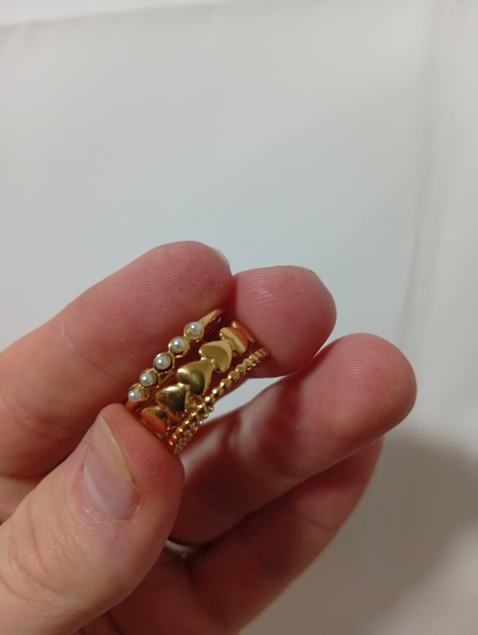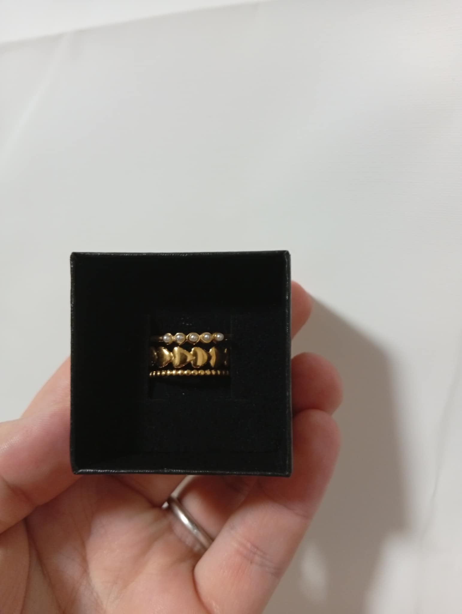 Denne ring, 3 i 1 ring sat sammen med 3 forskellige mønstre. Ringen er justerbar så passer mange forskellige str.
