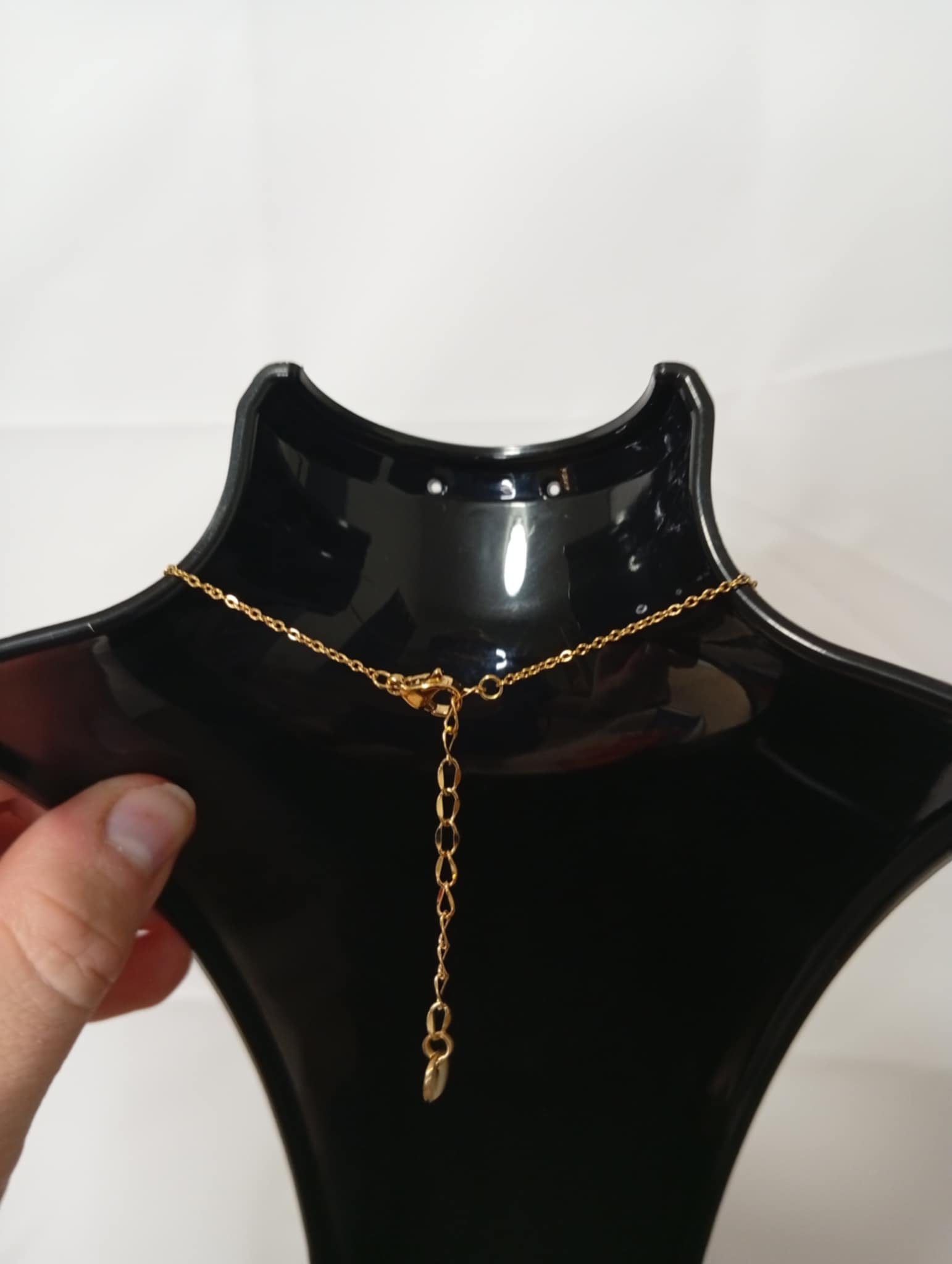 Smuk halskæde med en længde som passer ned i kavalergangen med to store guld detaljer på, justerbar i længden