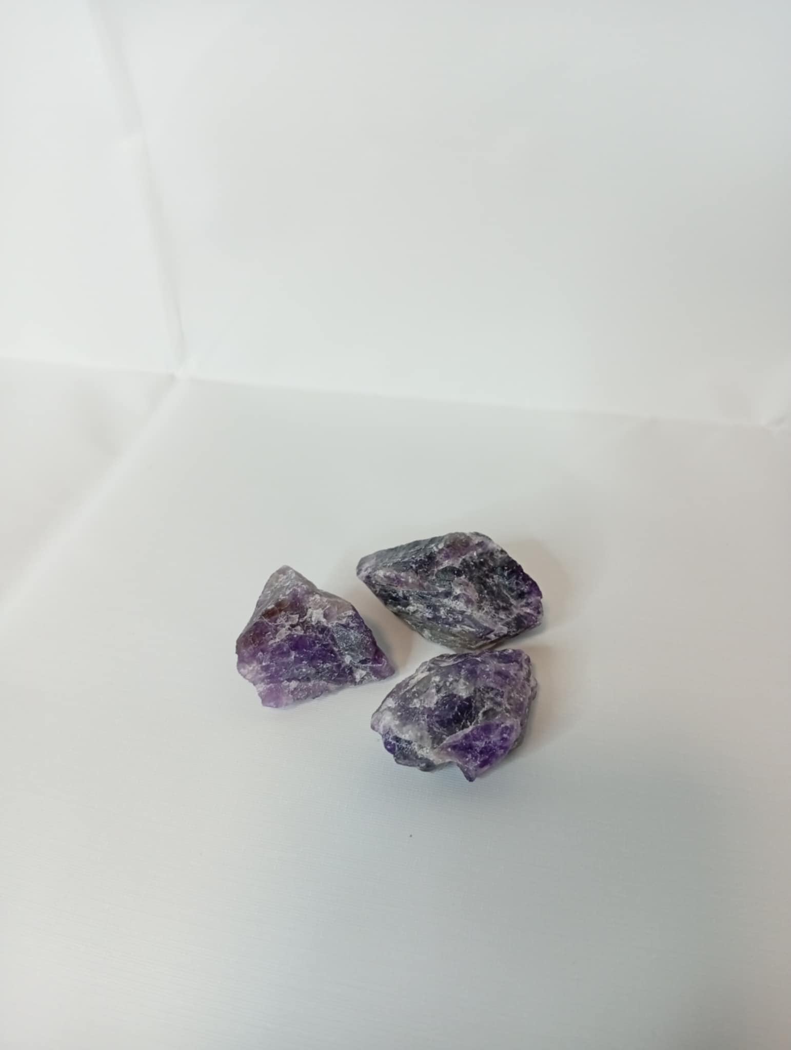 Rå ametyst er en naturlig, lilla krystal med smukke, rå overflader og tydelige spidser. Den er populær både som dekorativ sten og til personlig brug.