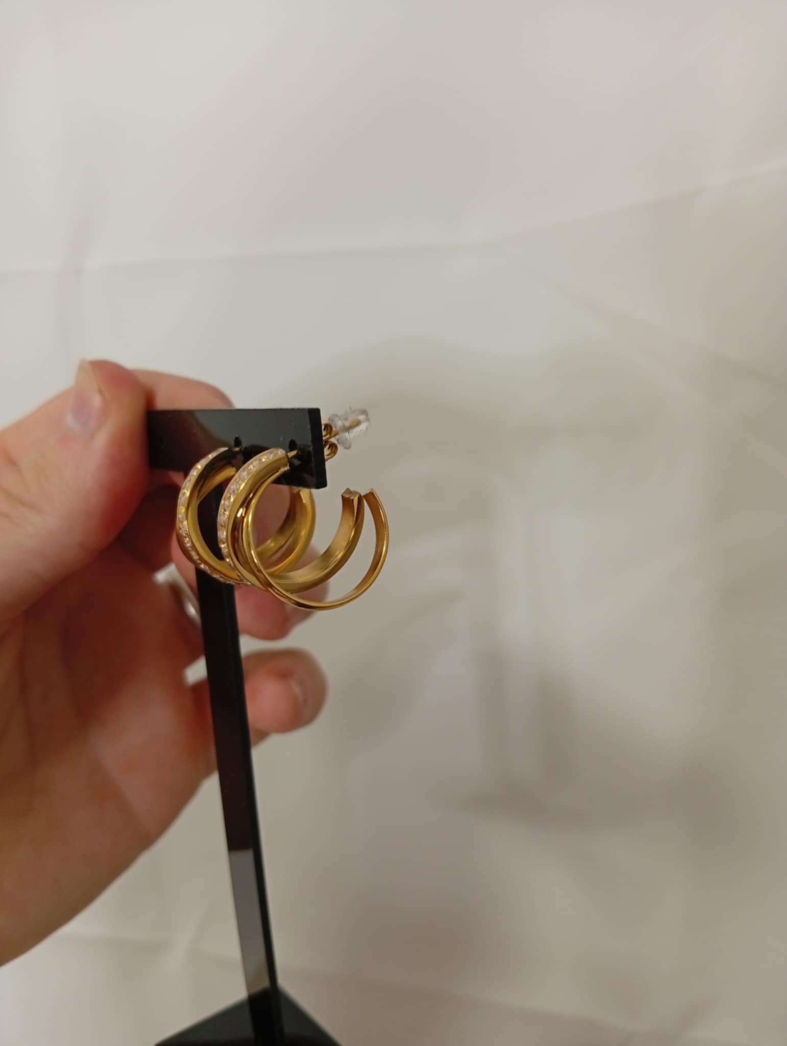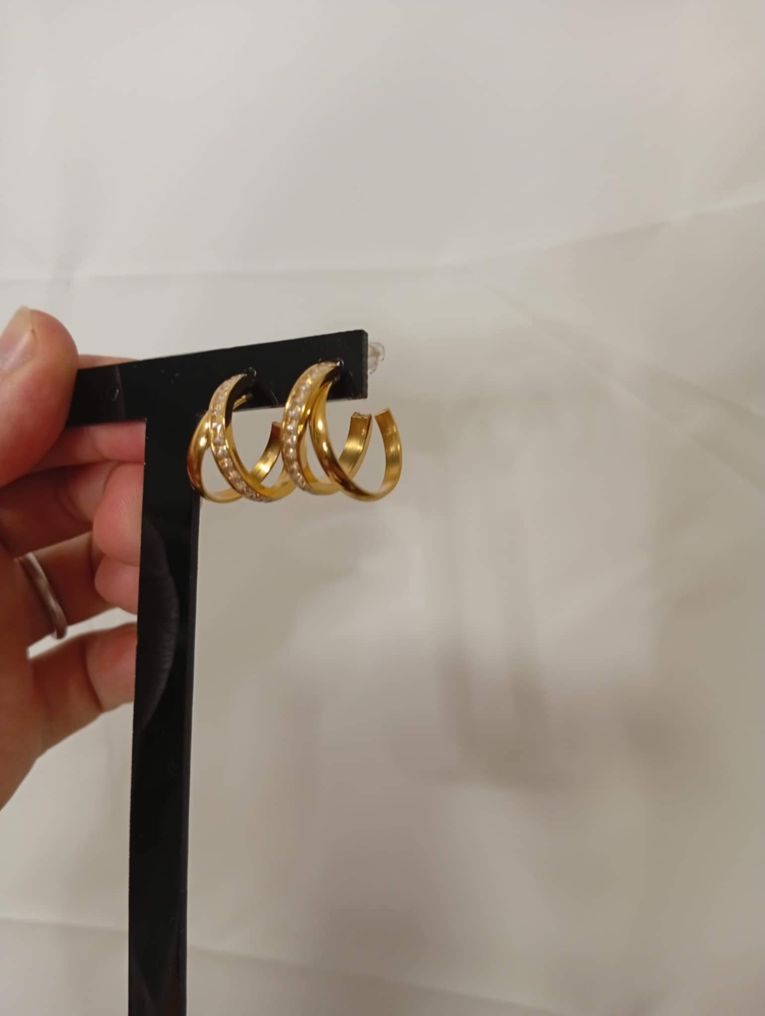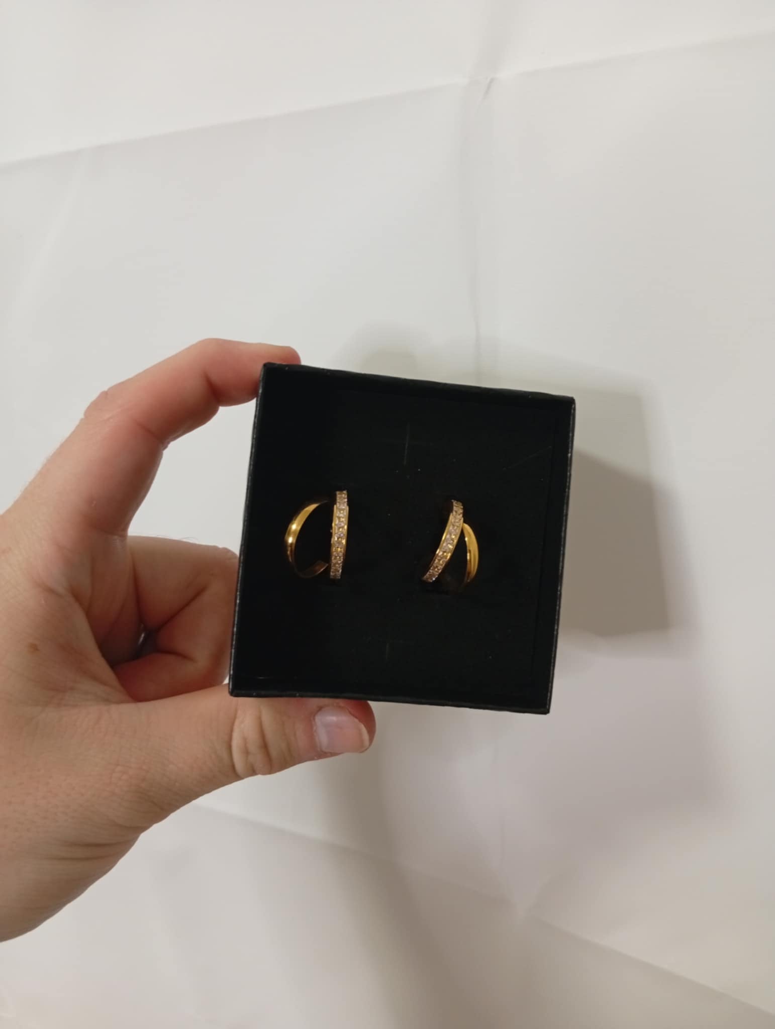 Smukke øreringe lavet som to små hoops med forgyldning og sten. lavet som stikkere.